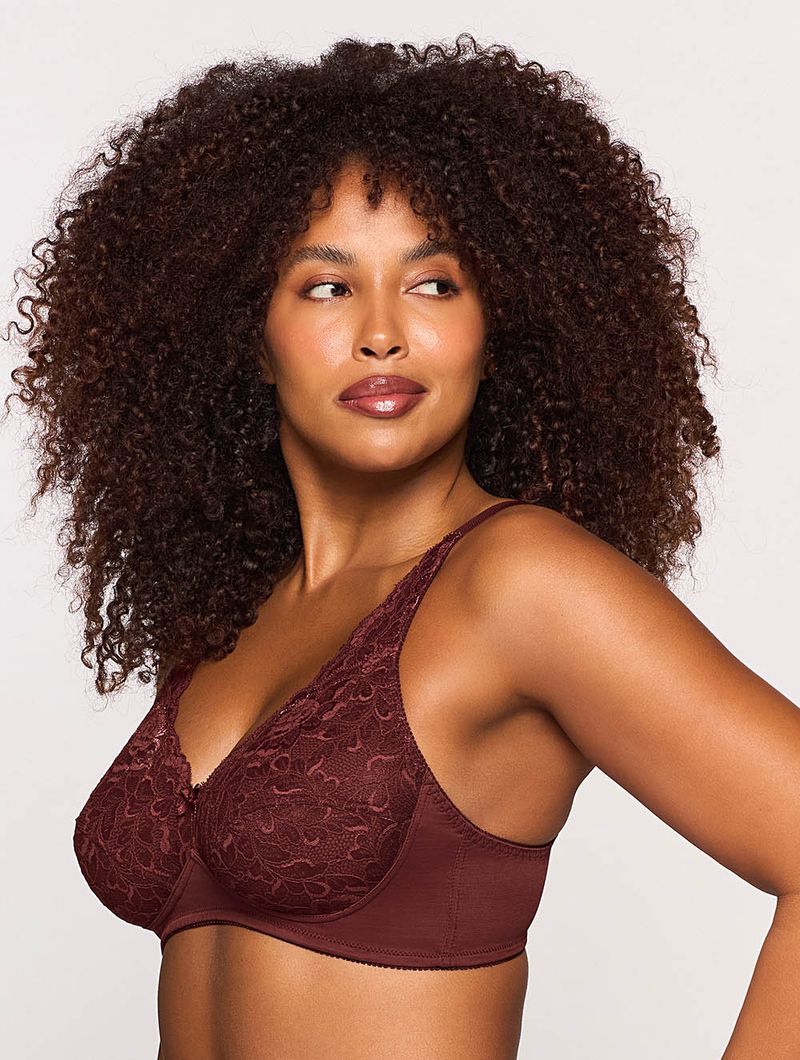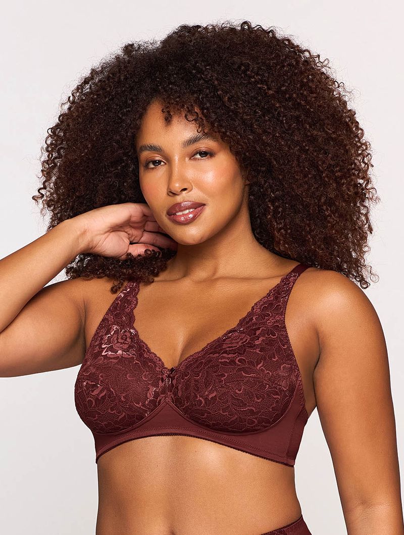 Sutiã em cetinete opaco com renda nas alças e bojo. Modelagem clássica de sutiã com fecho traseiro, sem aros e sem bojo para maior conforto.